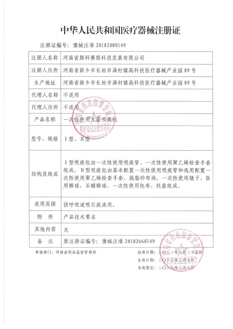 一次性使用無菌吸痰包 延續(xù)22.8.25